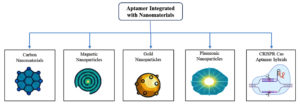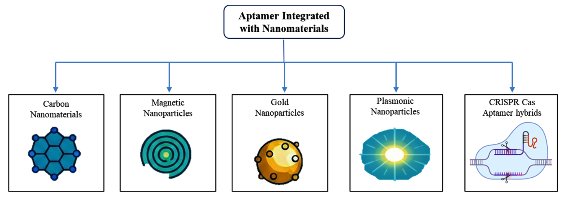 The structural flexibility of the aptamers plays a vital role when binding to the target, which can be enhanced by pairing the aptamers with functional nanomaterials like gold nanoparticles, carbon nanostructures, and quantum dots, which enhance the detection and improve biosensing applications, which is extensively studied for microbial diagnostics by enabling rapid, accurate and affordable detection methods in contrast with conventional antibody-based techniques.6,7