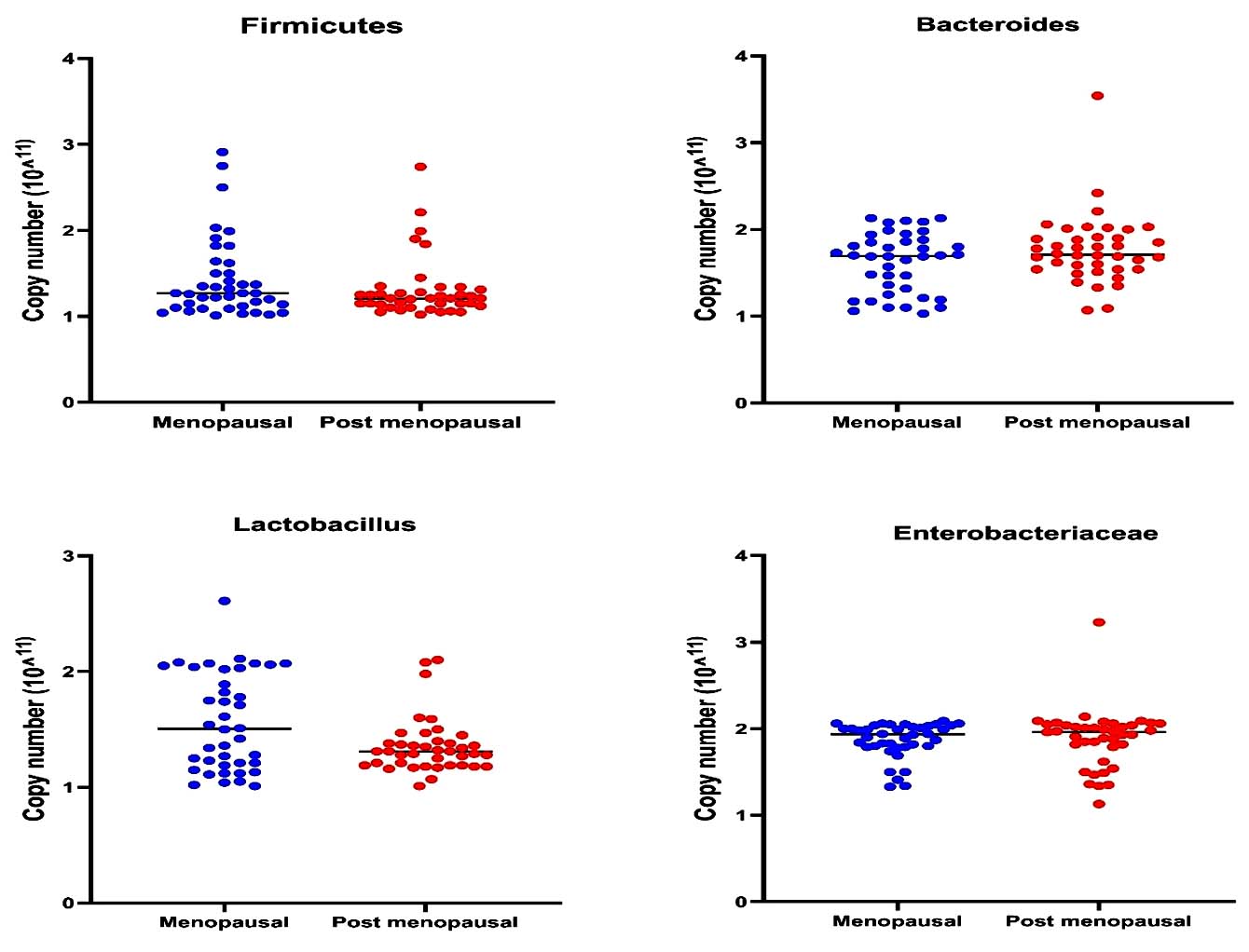Despite advancements in understanding vaginal microbiota composition, there remains a gap in comprehensive research focusing on the quantitative and qualitative differences in the vaginal microbiome between premenopausal and postmenopausal women. Most existing studies primarily rely on traditional culture methods, which are limited in detecting fastidious or unculturable microorganisms. Molecular methods, particularly Polymerase Chain Reaction (PCR) and quantitative real-time PCR (qPCR), provide superior sensitivity and specificity for the identification and quantification of bacterial species, encompassing both cultivable and non-cultivable microbes.4