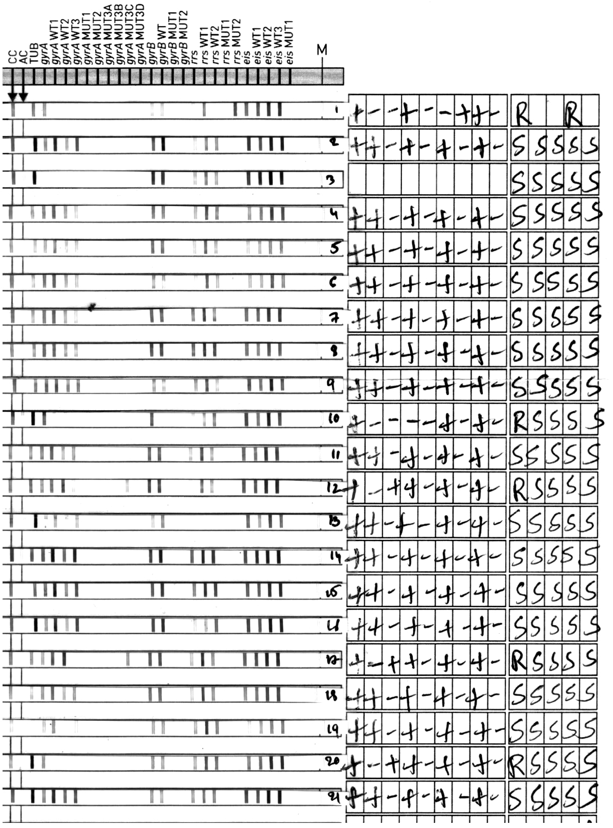 Figure 1. Representative Assay results of GenoType MTBDRsl Version 2.0