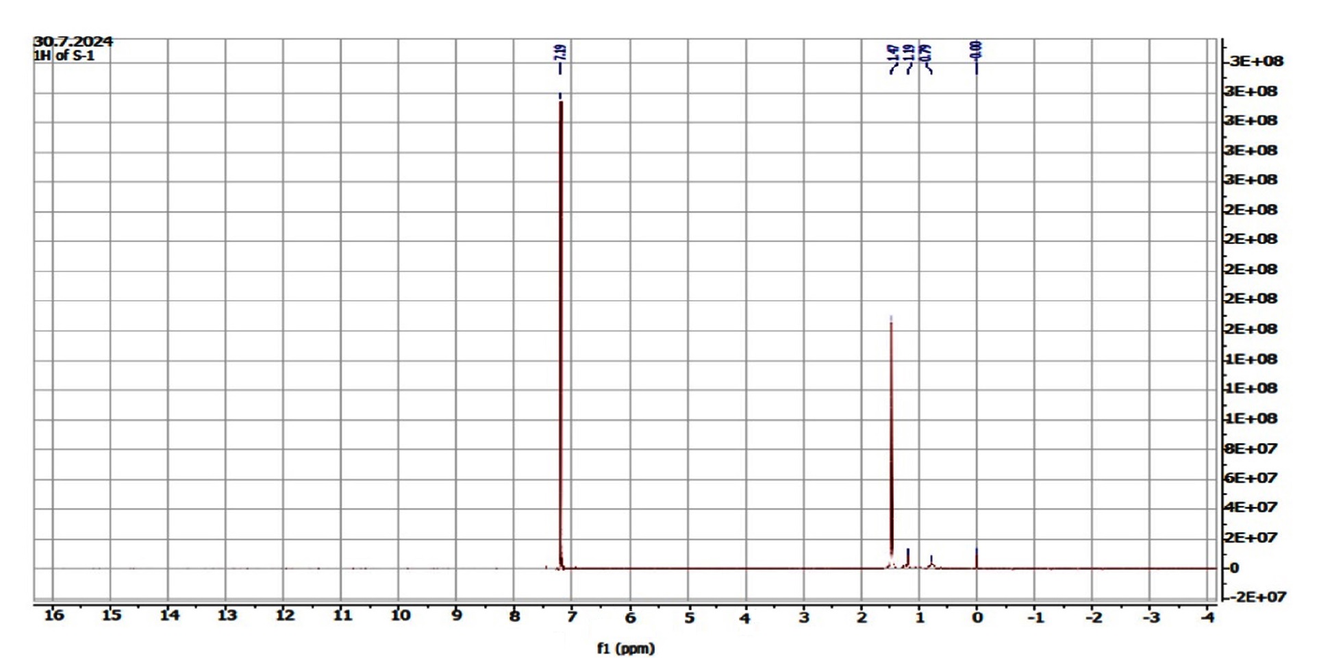 Figure 4. NMR Spectroscopy of ethanolic extract of F. indica. 1H NMR (400 MHz, CDCl3): δ 1.47 (s, 3H)