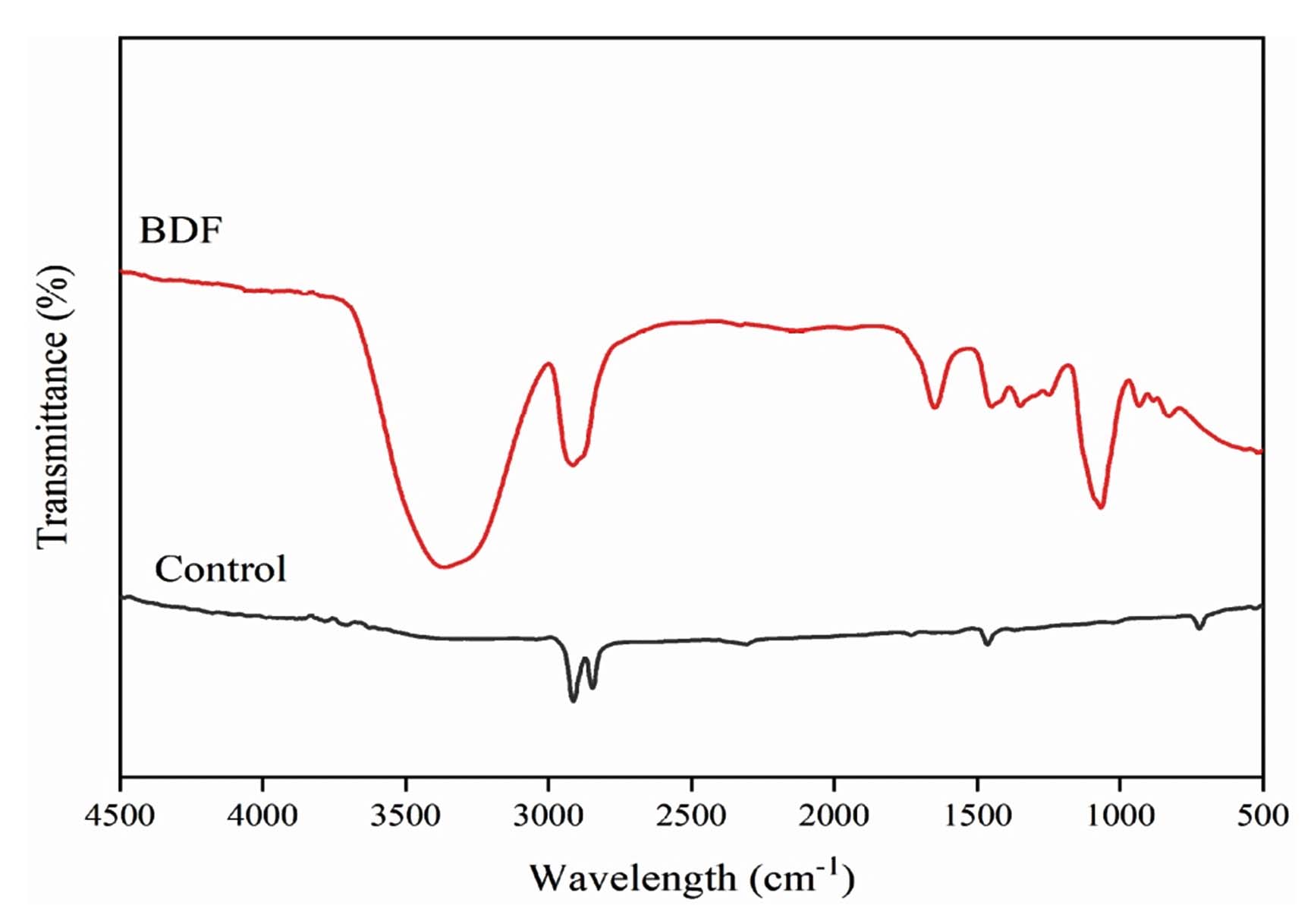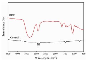 FTIR- ATR sample spectra of PVA/PEG/JSE BDF and control film were recorded in spectroscopy (Thermo Fisher Scientific USA, Nicolet iS10), ranging from 4000 cm-1 to 500 cm-1.35