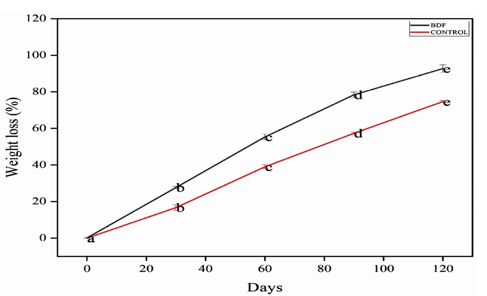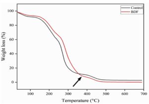 Figure 12. Biodegradable capacity of PVA/PEG/JSE BDF