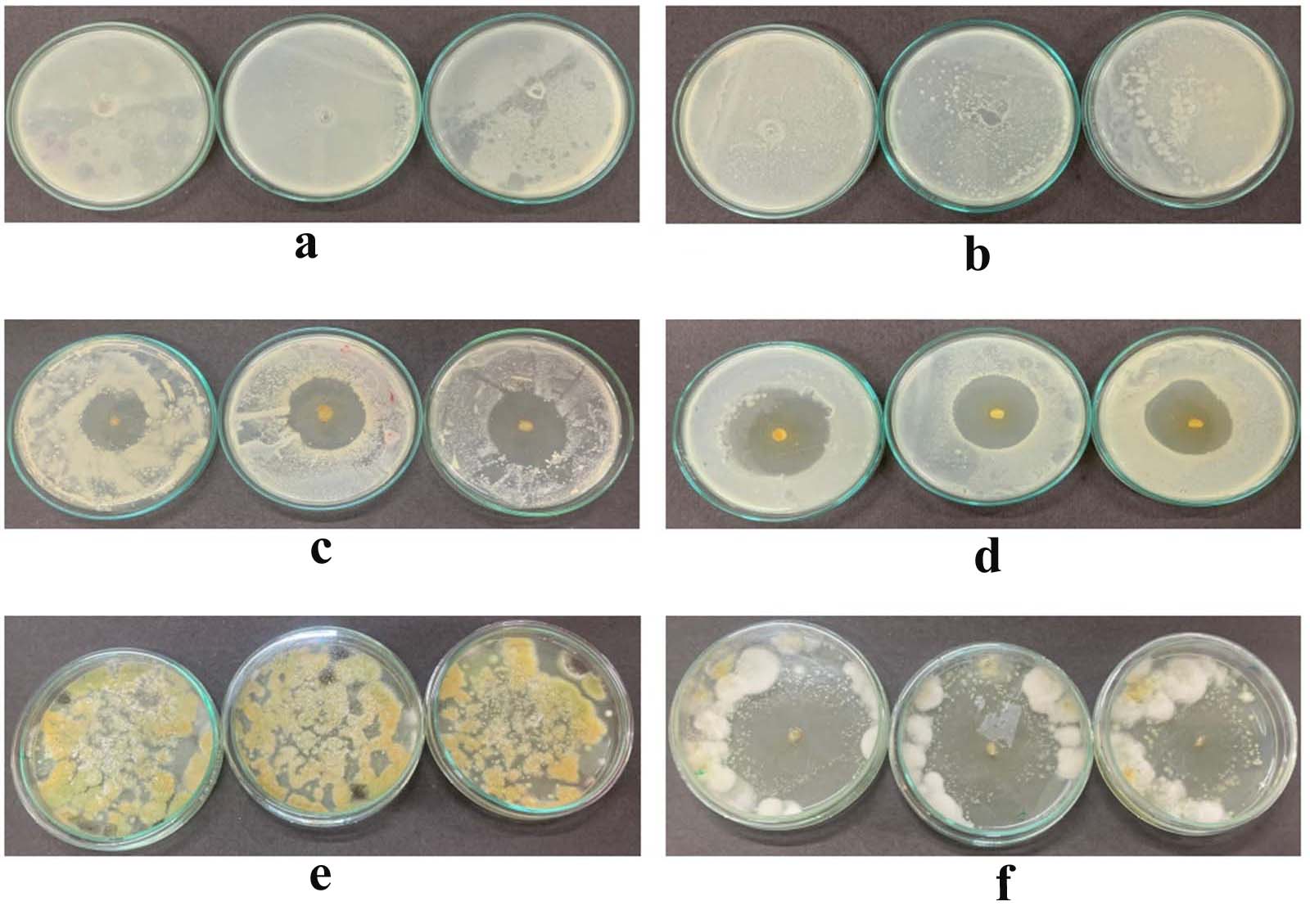Note: Values were expressed as mean ± standard deviation and were calculated by the zone of inhibition. Small letters (a, ab, c) within a column show significant differences as assessed by one-way analysis of variance (ANOVA) significance at P < 0.05