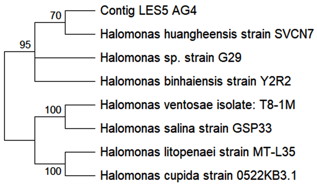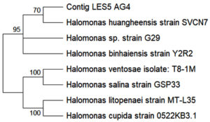 Identification of ectoine-producing halophilic bacteria isolate LES5 AG4