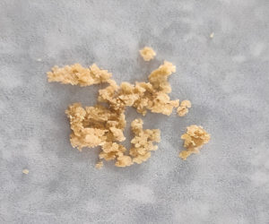 The Bacillus tequilensis cultures, when grown under optimal parameters, i.e., in media supplemented with glucose and tryptone as the nutrient source, incubated for 48 hours at 37 °C, yielded 0.1 g of PHB48 and are illustrated in Figure 9. It has been demonstrated that the use of fruit and vegetable waste as substrate offers an effective way to increase the yield of PHB and has been studied in a certain number of Bacillus species.49 Watermelon rinds were blended in media, and the produced PHB yield was compared with the PHB produced in conventional optimized media. The yield of the PHB was now found to be 0.34 g, as shown in Figure 10. This further supports the usage of watermelon rinds/peels as a carbon source can aid in increased PHB biomass production, serving as an economical strategy to enhance PHB production in such microorganisms.