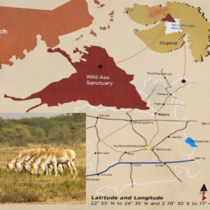 The Little Rann of Kachchh, constituting a Biosphere Reserve, extends over about 6,500 km² of low-saline desert with discontinuous patches of uplands. Of this area, 4,841 km2 has been declared as the Indian Wild Ass Sanctuary, which is the habitat of the critically endangered Indian Wild Ass (Equus hemionus khur)20 (Figure 1).