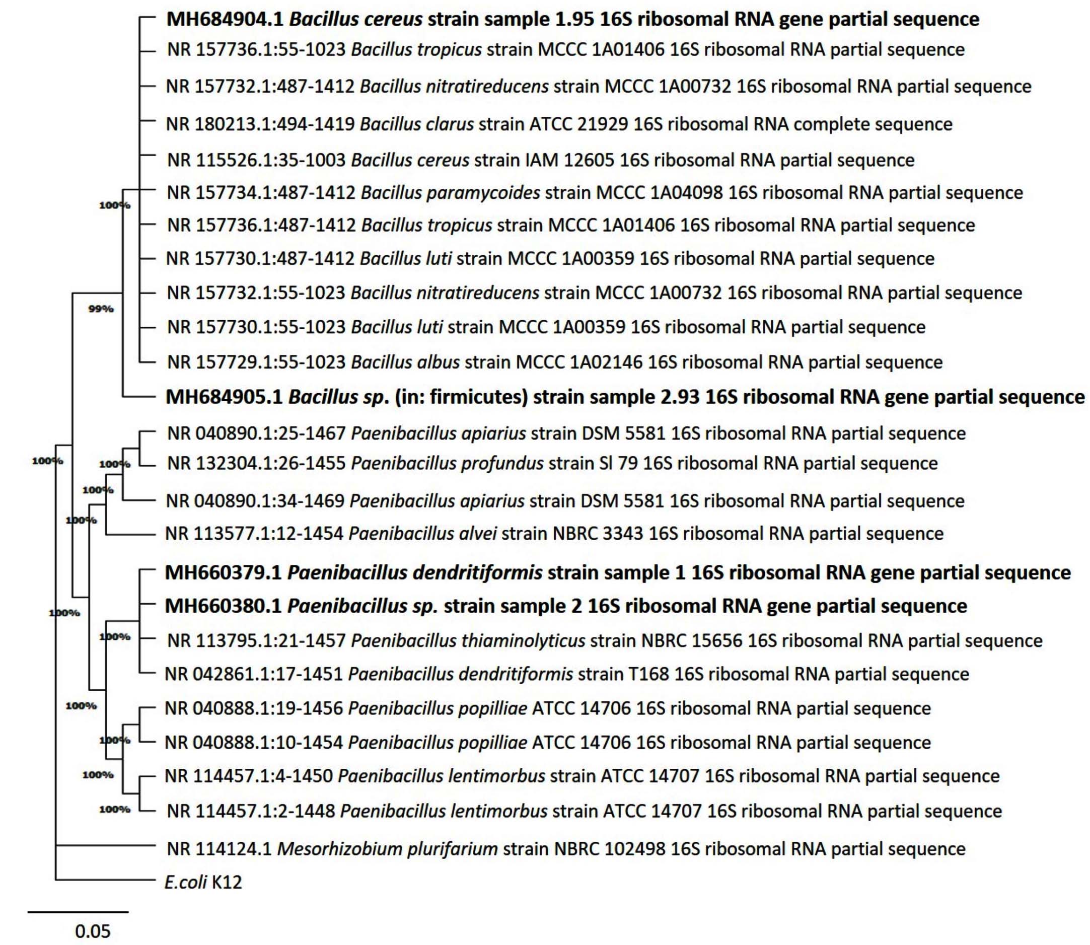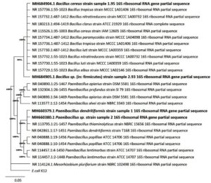 Sequencing results of 16S rRNA of the isolates and their identification