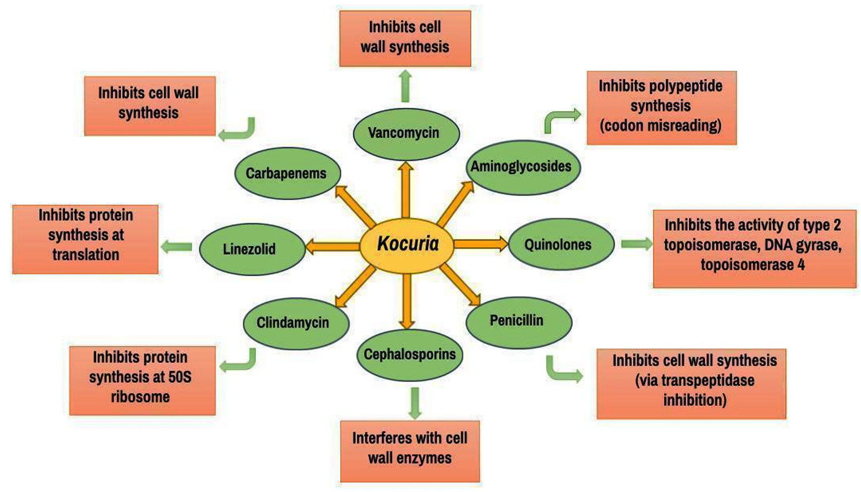 The importance of Kocuria in transmitting illnesses picked up in hospitals has been addressed.49 The same study also stated that Kocuria spp. should be regarded as possible pathogens in immunocompromised patients, those receiving critical care treatment, and newborns, even though they coexist with people, animals, and the environment. More than 50% of patients in a research involving twelve adolescents who had underlying, severe illnesses such as cancer and were born from preterm delivery developed invasive infections with Kocuria spp.50 There is an increasing trend of reported illnesses brought on by Kocuria spp. in previously healthy and immunocompetent people.