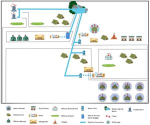 On inspection of the site by IDSP officers, the following observations were made. The mess and dining area were found to be clean and it was informed that before and after every meal preparation washing and cleaning was done on regular basis. The food handlers also maintained hygiene by using head caps, gloves and aprons. The washing area was also found to be clean. In storage facility, perishable goods were kept in clean wooden racks and covered. The packaged food items were kept in a separate shelf and expiry date logbook was maintained by the store in-charge. The dairy products were refrigerated. The cooked foods were covered and kept on top of a clean bench. The garbage disposal area was located few distance away from the dining area and was properly barricaded with tin sheets. The drainage system was well covered. The sewage pipelines were also checked and found to be satisfactory with no leaks or any broken pipes. In the spring water source, few pipes were found to be connected directly into the mouth of spring water tied with ropes and cloth filters. It was observed that water was supplied directly to the camp with no filtration system in the mess area of SP barrack and jawans barrack. The water tank near the military camp also did not have any filtration set up. It was only in the officer’s barrack, that there was a proper filtration system with RO facility and water was supplied to mess area of officer’s barrack.