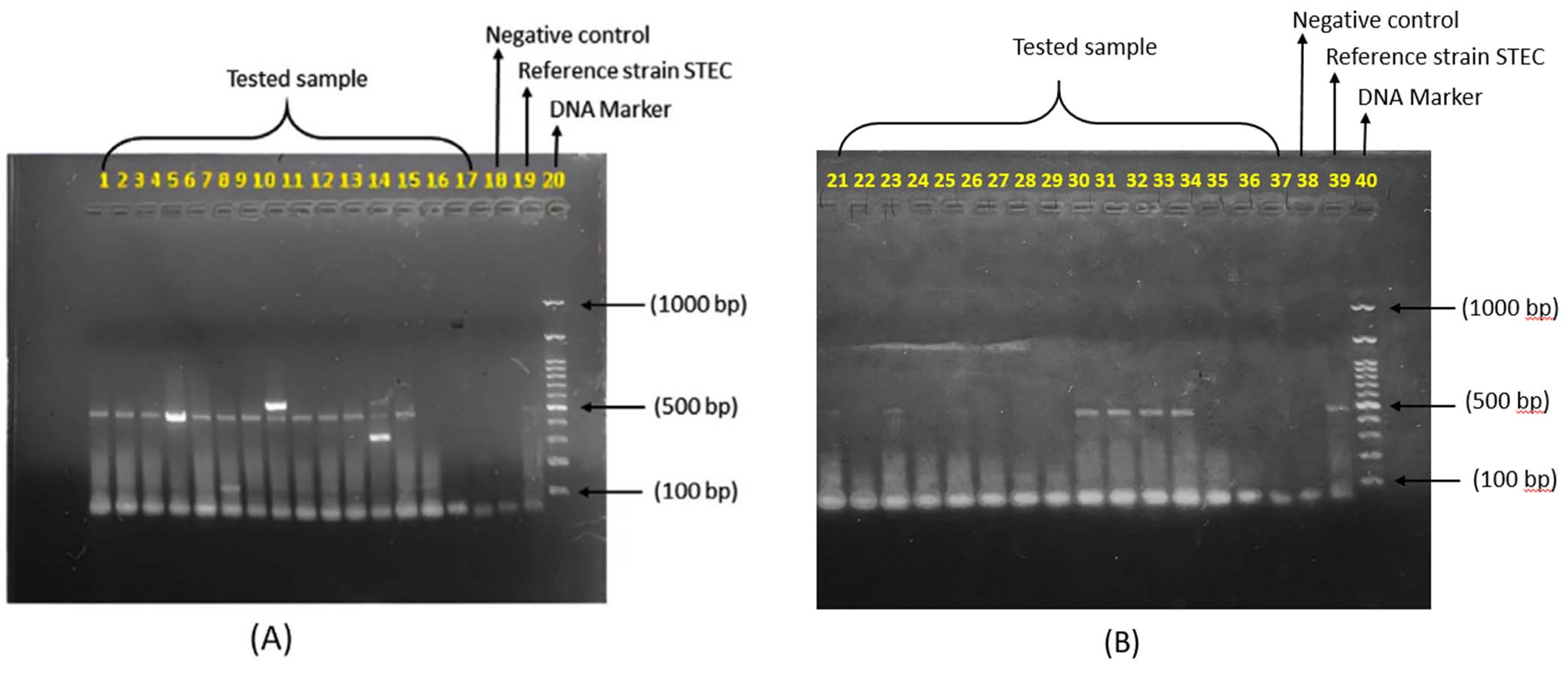 (B): Agarose gel electrophoresis showing amplification of STEC isolates