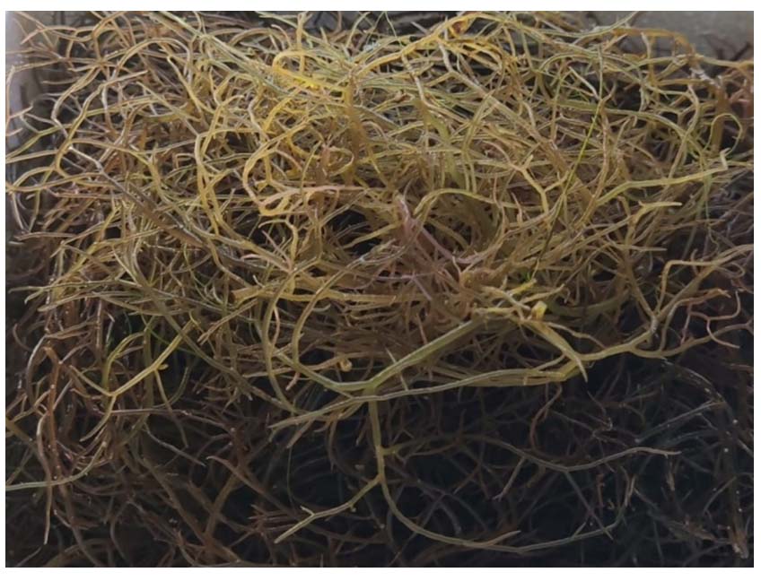 Gracilaria edulis is a type of seaweed known for its thick and juicy thallus. It often presents a dark purplish-red shade and may look sleek. The thallus consists of closely clustered small branches that are smooth or hairy. These branches are generally around 1 mm wide and commonly possess a dichotomous branching pattern. This species also features a small, round holdfast that serves to secure the algae to the surface.10 Feedstock of G. edulis, sap have been extracted from freshly harvested biomass as an agricultural byproduct (plant bio-stimulant). The plant bio-stimulant obtained from seaweed feedstock has been shown to greatly enhance yield, whether measured by biomass weight.11 The existence of crucial amino acids, lipids, and micronutrients, along with its characteristic as a thickener, allows food-grade agar derived from G. edulis to be utilised in the production of a variety of agar-based items like films, pastes and gels.10 Usage of nanosized cellulose has become increasingly popular, particularly within industrial and biomedical applications.12