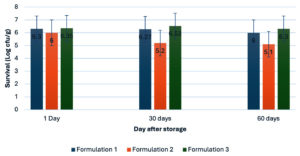 Figure 2. Survival of B. velezensis MSU01 in powdered formulations after storage at room temperature