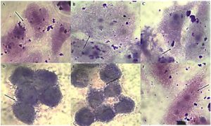 The ‘gold standard’ HEp-2 cell adherence assay was used to characterize six typical EAEC isolates (R1, R2, R3, S1, S2, S3). All isolates displayed the characteristic stacked-brick pattern, confirming their ability to adhere and spread disease as typical EAEC (Figure 1). The six EAEC isolates were screened for the presence (+) or absence (-) of plasmid-borne genes (cvd, aggR) and chromosomal genes (fimA, Irp2, ecp). Isolates R1, S2, and S1 lack fimA, while R3 lacks both cvd and Irp2. All other isolates consistently display positive results for aggR and ecp (Table 1).